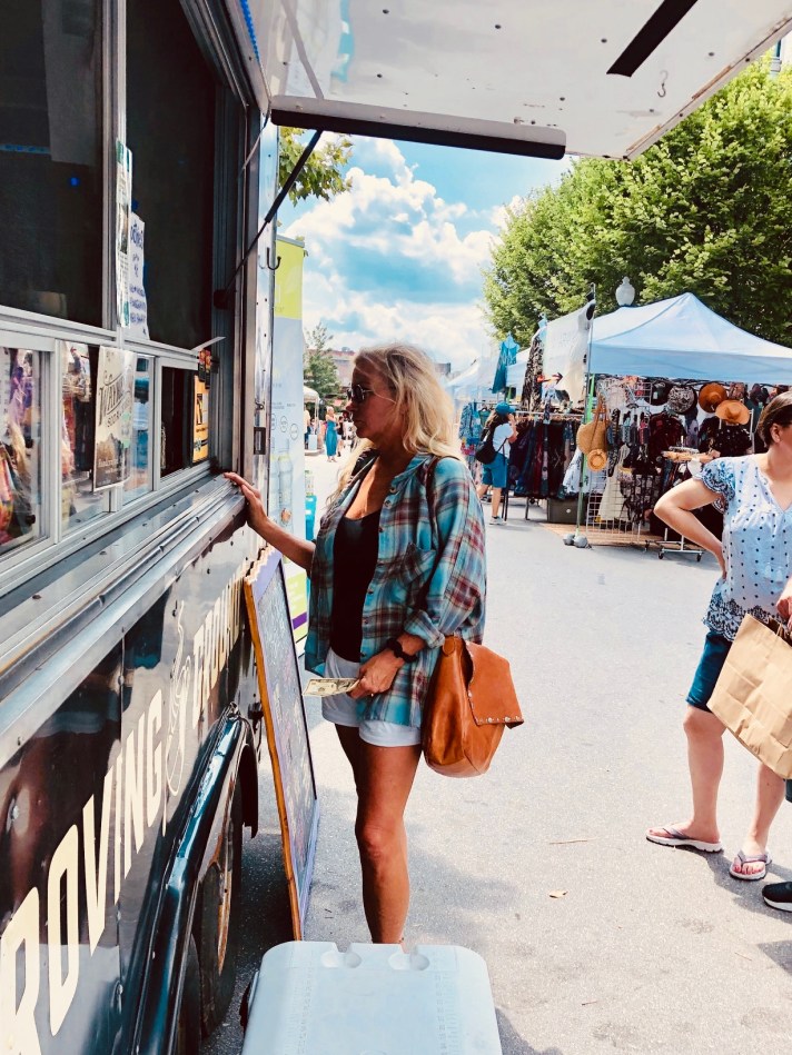 Downtown Asheville offered great shopping opportunity for Mrs. Jones. Fantastic food and where else in the world can you stumble into an enormous yoga fest?