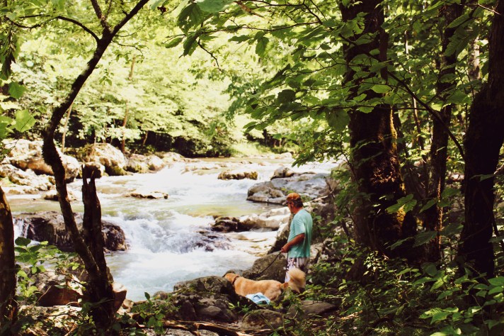 For the record, no dogs on the trails in the National Parks – be ready to leave poochy home by the campfire if you want to hike. (Gatlinburg Trail is a 3.8 mile hike and the only one in the park that allows dogs.). No one said we couldn’t throw the curious fellow into the mini though for an icy cold dip in the river!
