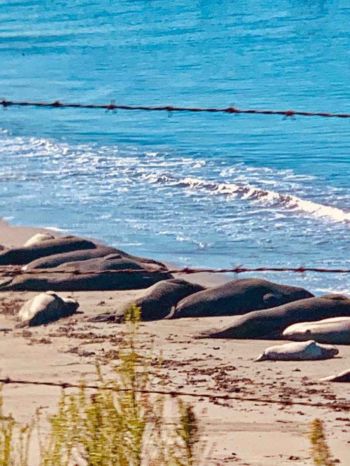 The prize for making the trek and not skidding off the cliffside while towing a car was… Elephant Seals! Wooohoooo!!