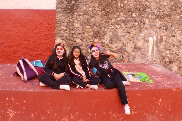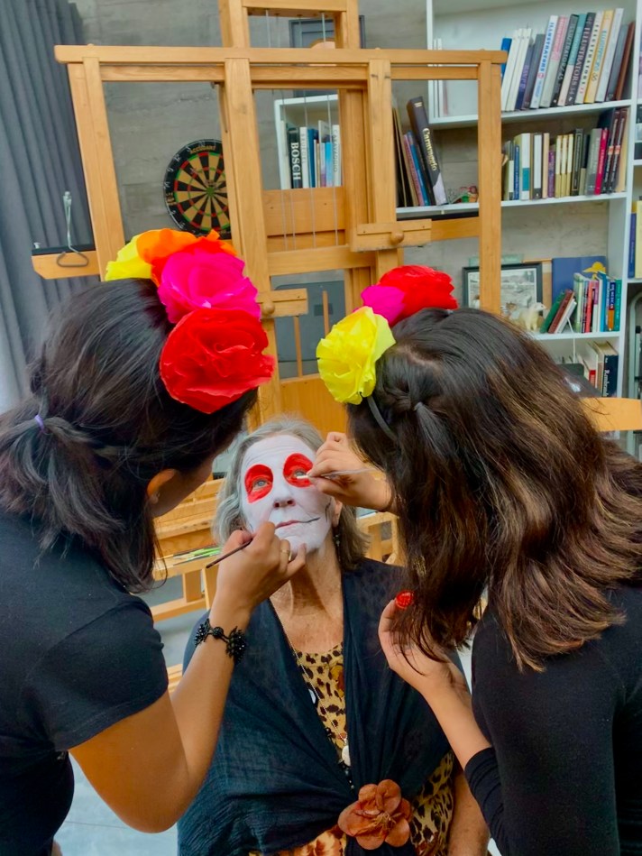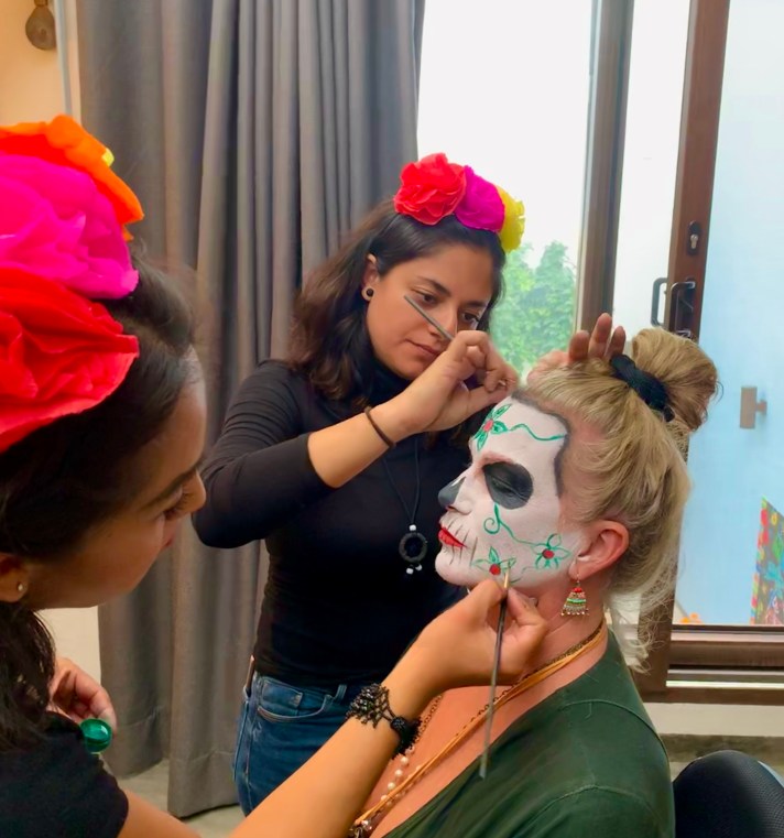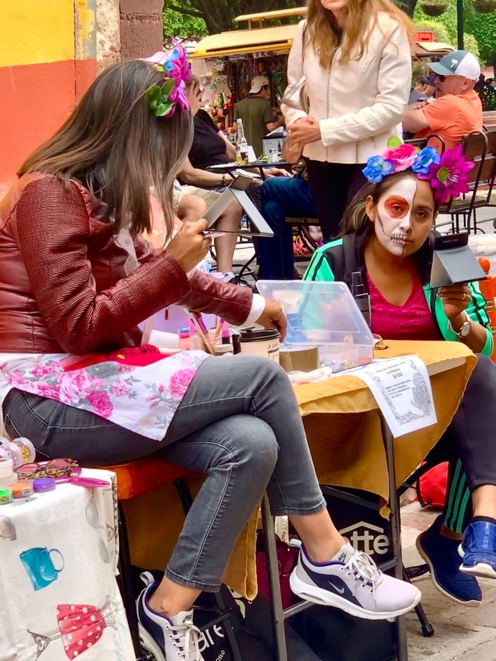 While he had great guidance on his face paint situation, the ladies turned to the local pros! Que bien!!