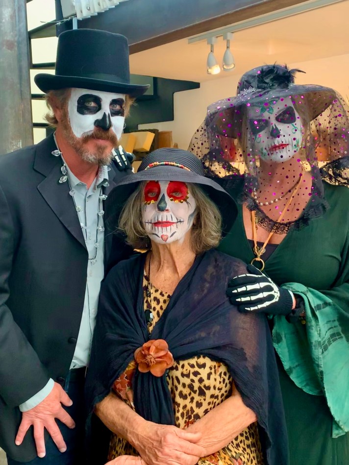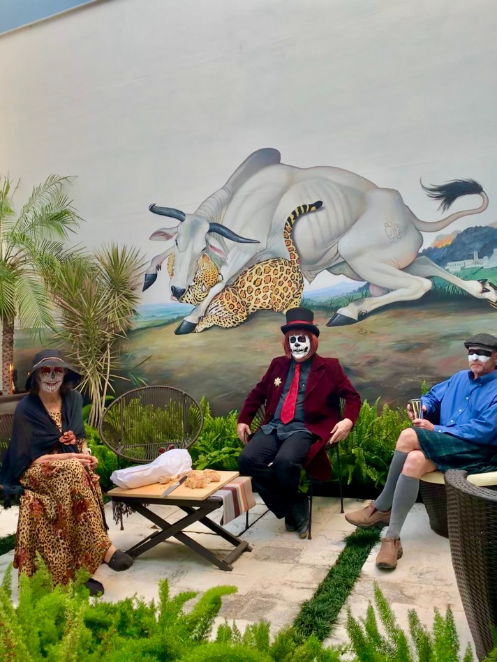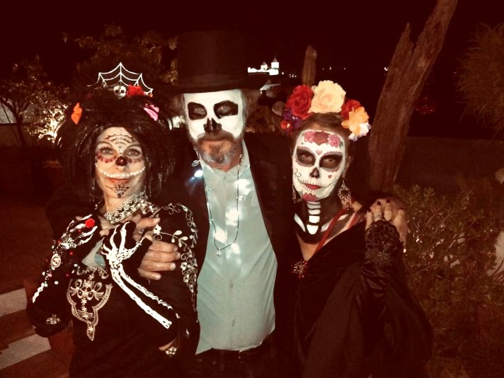 But if you’re lucky like Mrs. Jones and you pull a few strings, you can be painted in the home of a famous artist with badass musicians, and The Who’s who of the San Miguel expat community! These people are cool and accomplished and well educated and mostly way too much fun… Mrs. Jones has met her match? Here’s the professional artist advising the hombres as to the method of following the face structure… dedicated to achieving an anatomically perfect face paint! Huh? Pass the Don Julio 1970 and hand me a ninety dollar paint brush would ya?