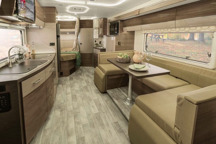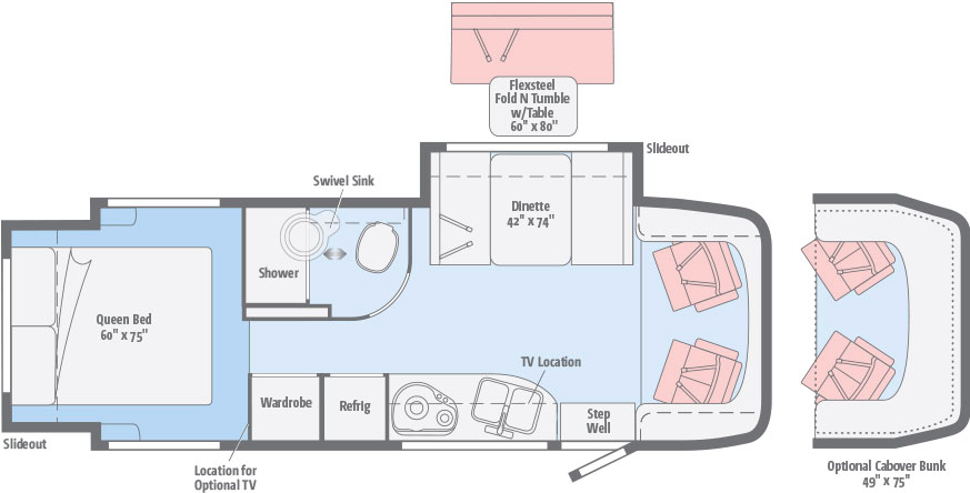 Length 25’7″, Exterior Height 11’1, Exterior Width 7’6″, Interior Height 6’8″, Interior Width 7’3″, Fresh Water capacity 31 gallons, Water heater capacity continuous, LP capacity 13 gallons, Fuel capacity 26.4 gallons… a true test of any marriage.